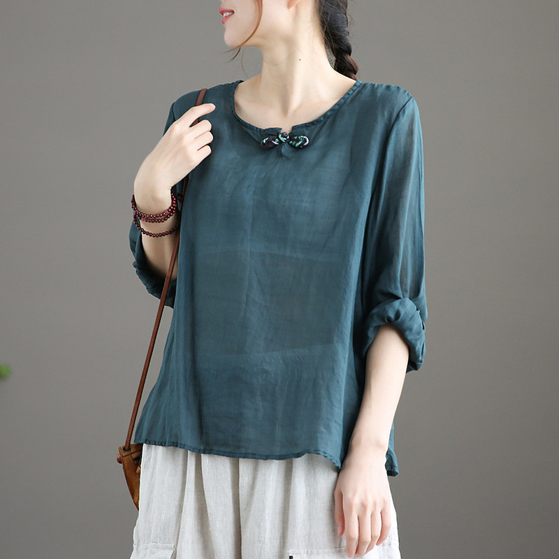 女春夏中式 国风上衣外套 复古盘扣中长款 棉麻衬衫 - 女装/女士精品