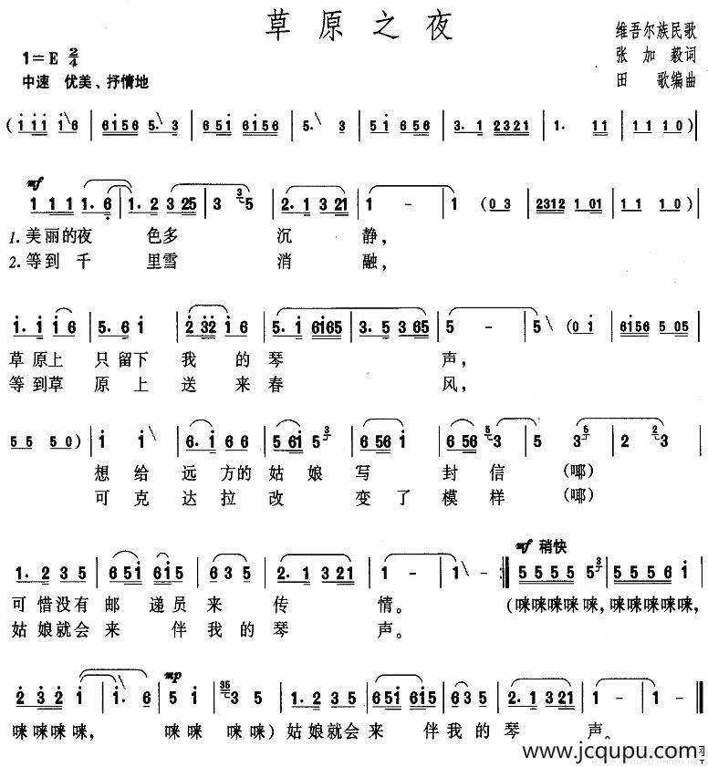 草原之夜(歌唱谱 高清版) 歌谱简谱网