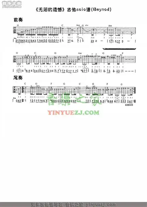 beyond《无泪的遗憾》solo吉他谱_吉他谱_简谱_尤克里里_吉他谱下载