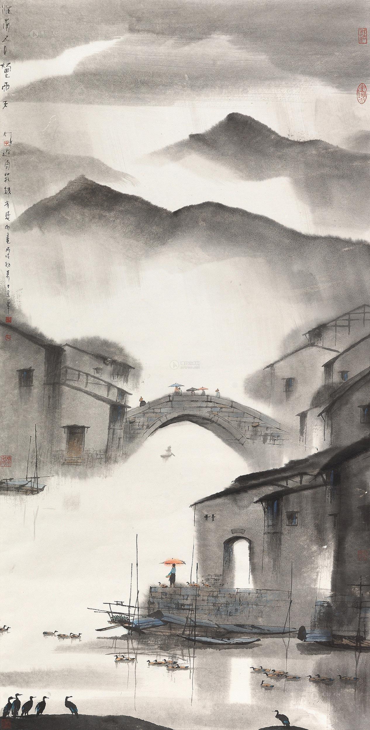 烟雨江南美景欣赏 诸明国画美丽雅致 诸明老师最新创作的江南水乡水墨