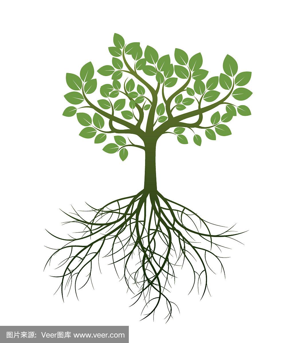 绿色的树和根.矢量插图.