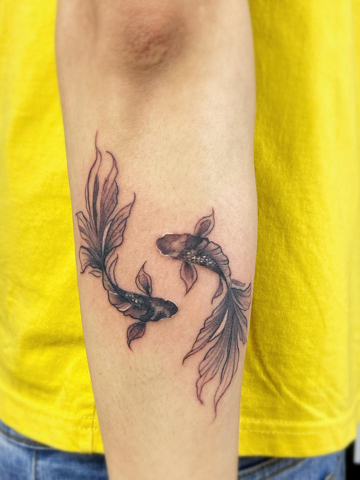 传统彩色鱼纹身图片_手臂手部新传统老传统锦鲤鲤鱼纹身图案