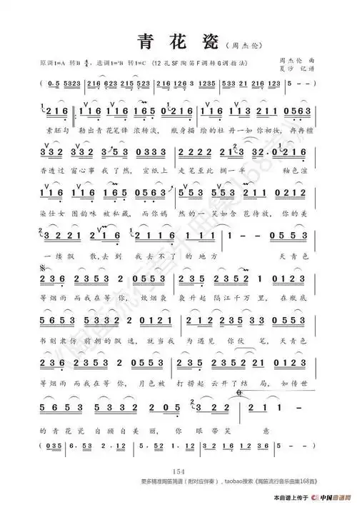 青花瓷 简谱 歌谱—周杰伦