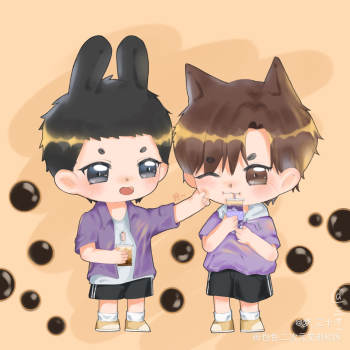 一起喝奶茶呗_撒野蒋丞顾飞q版绘画作品