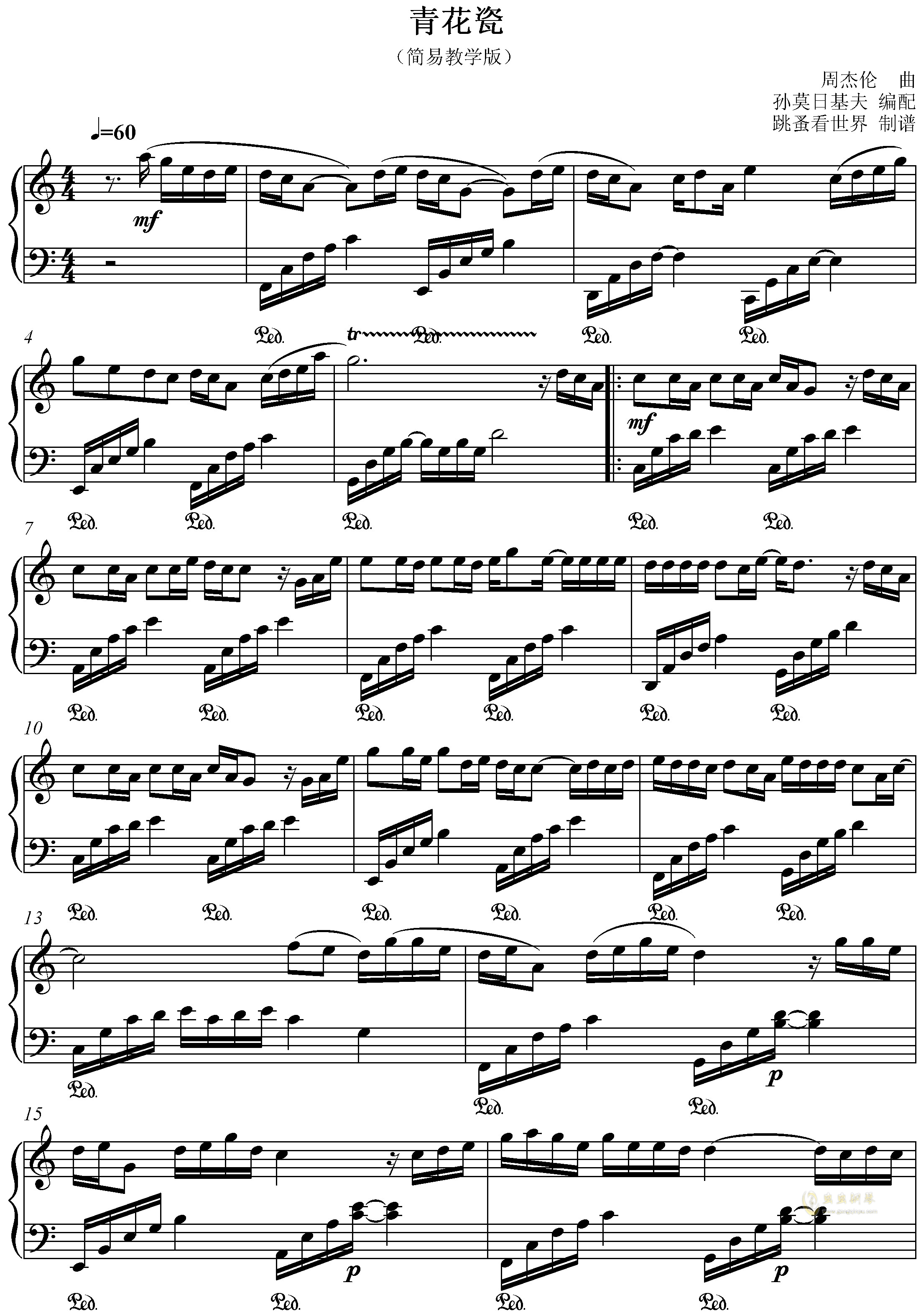 分享乐谱周杰伦青花瓷钢琴谱