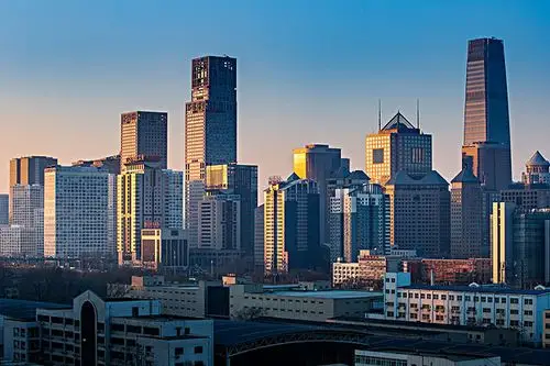 中国北京现代城市建筑和道路交通天际线