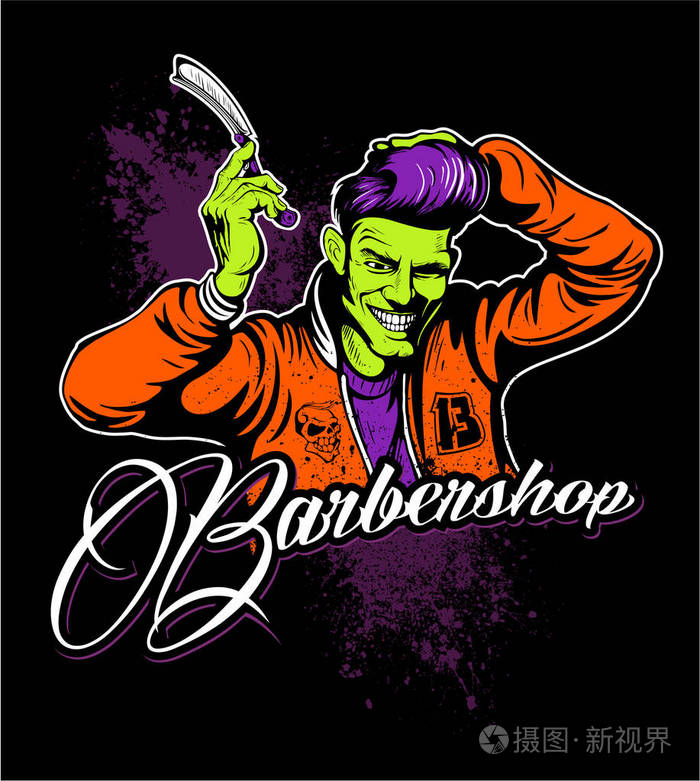 理发理发店漫画风格五十年代复古风格摇滚风格矢量形象