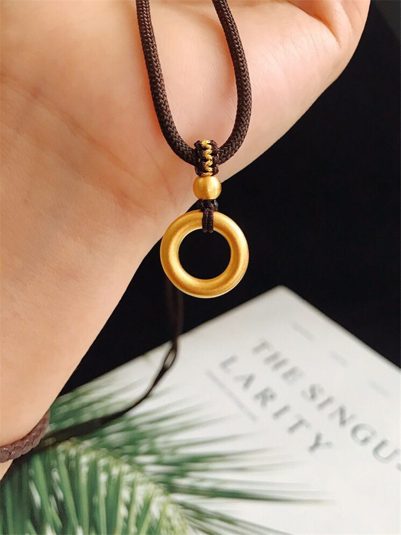 999足金同心圆素圈项链情侣款送女友礼物 平安扣吊坠【图片 价格 品牌
