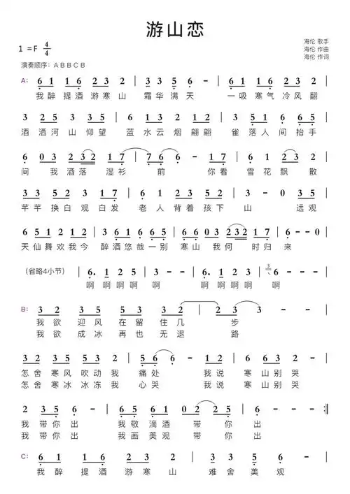 简谱歌曲《游山恋》,歌谱,歌词逐句领唱,简单易学_哔哩哔哩_bilibili