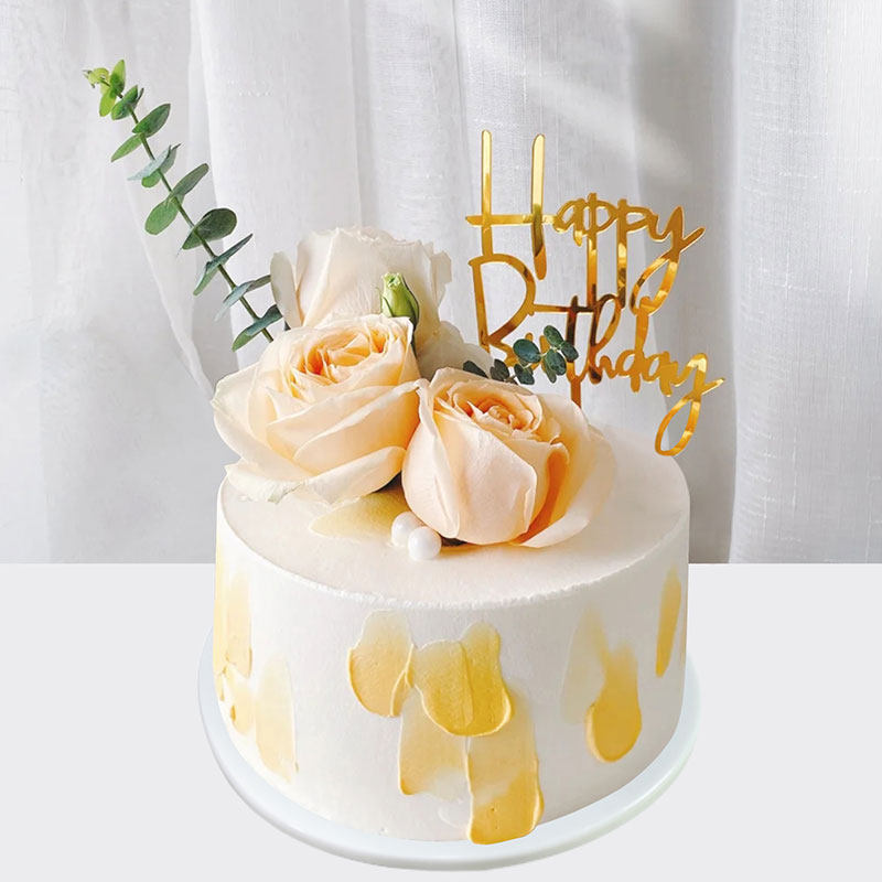 生日蛋糕模型仿真2021新款双层烫金蝴蝶创意定制仿真水果