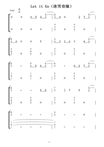双手简谱letitgo完整指法c大调简易版冰雪奇缘主题曲frozen随它吧