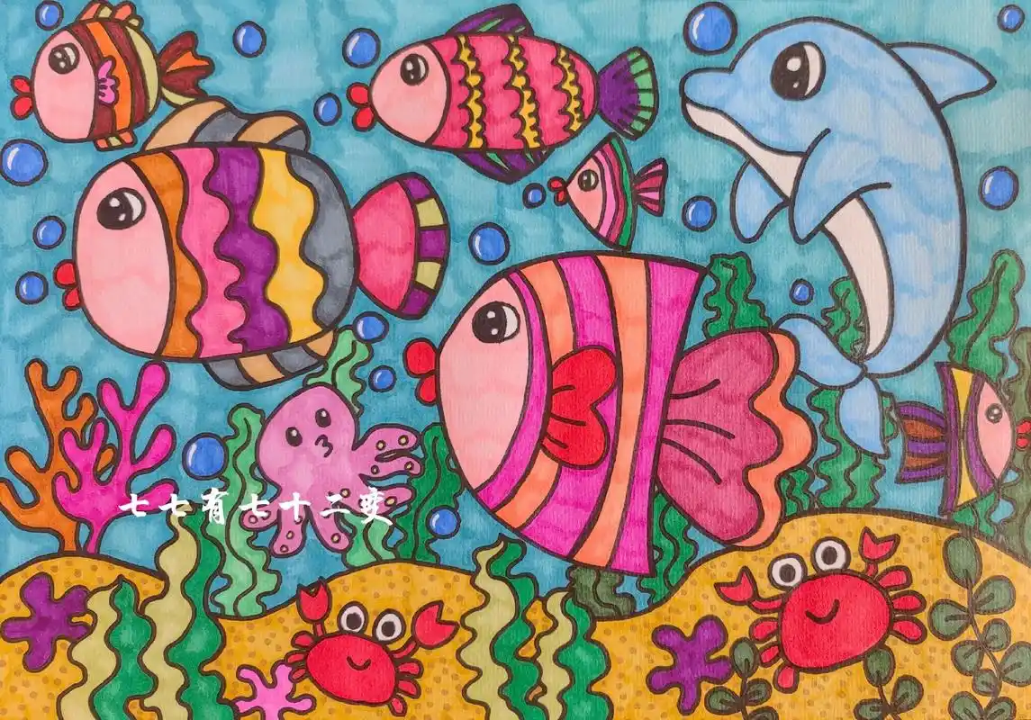 美丽的海底世界创意儿童画,一起来画画吧.#创作灵感 美丽的 - 抖音