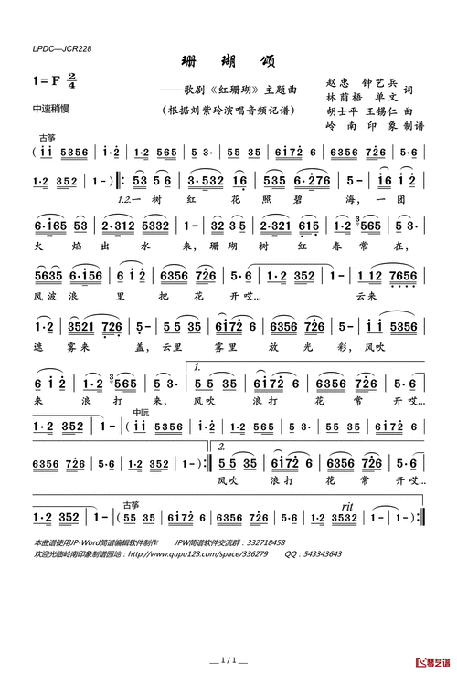 珊瑚颂简谱(歌词)_张燕演唱_君羊制谱