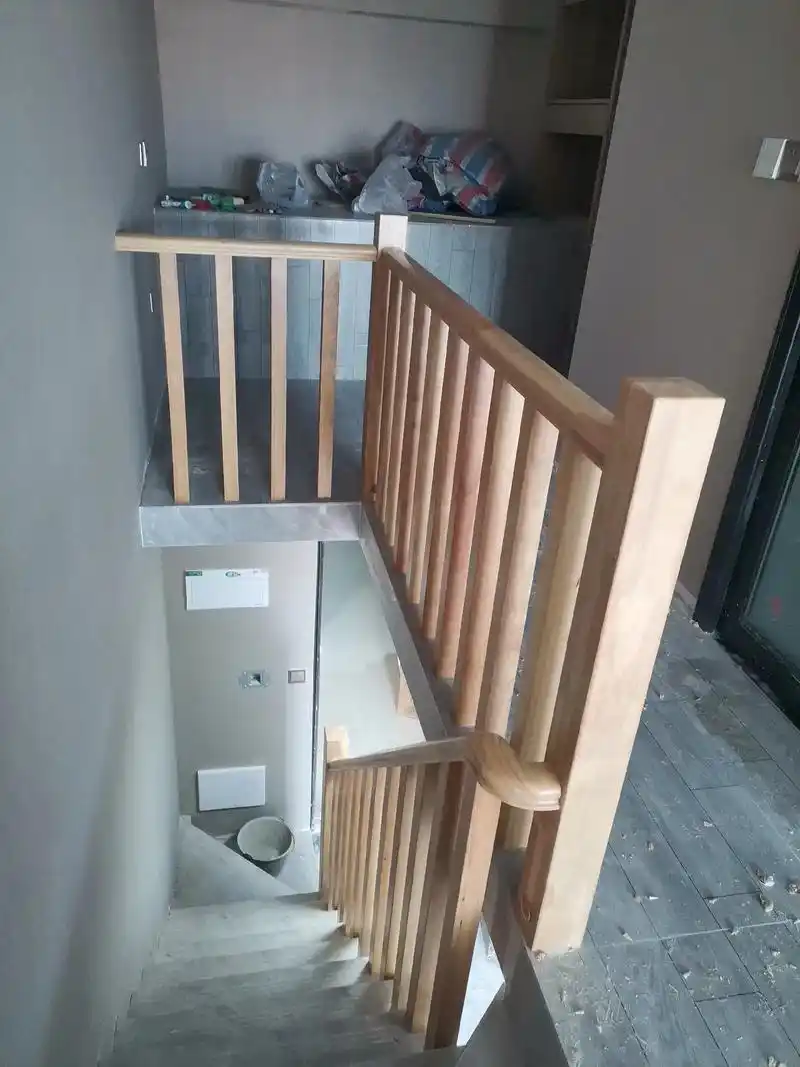 楼梯实木栏杆 石材梯步配上实木栏杆 搭配出来效果都很满意