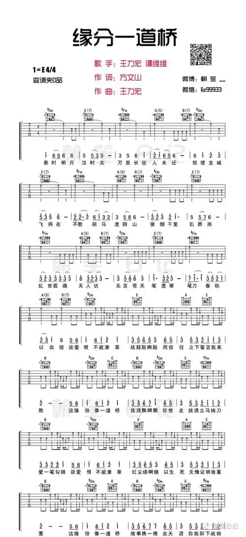 《缘分一道桥》吉他谱 — 王力宏 谭维维