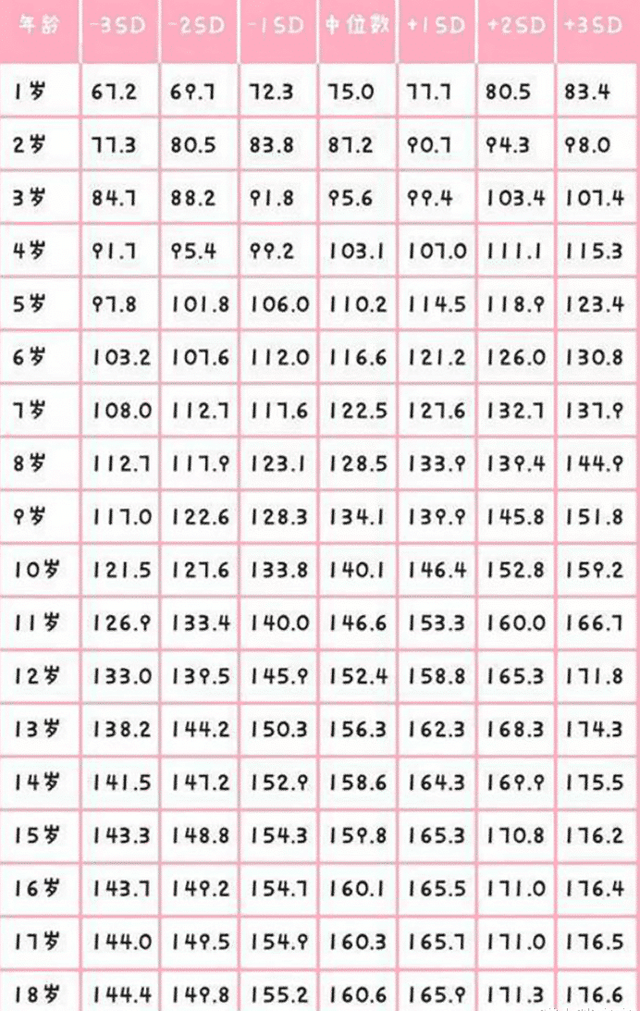 男孩1到18岁身高参照表出炉(单位:cm)
