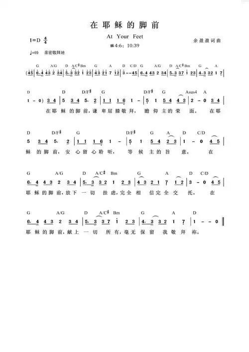 在耶稣的脚前 简谱