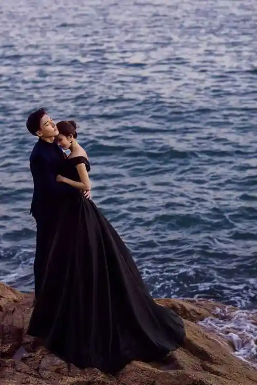 大气优雅海边礁石婚纱照