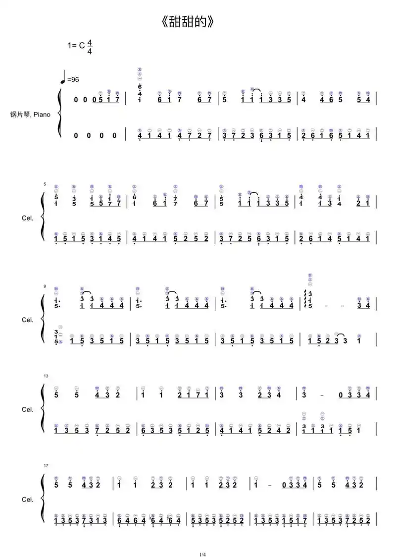 甜甜的-c调简单版双手简谱预览1-钢琴谱文件(五线谱,双手简谱,数字谱
