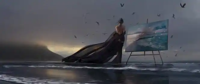 鬼刀冰公主海琴烟海边绘画8k电脑带鱼屏桌面壁纸