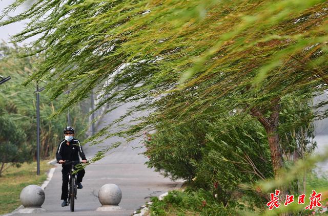 在黑虎泉西路一位行人的头发被大风吹起 记者张刚 摄□本报记者 赵璐
