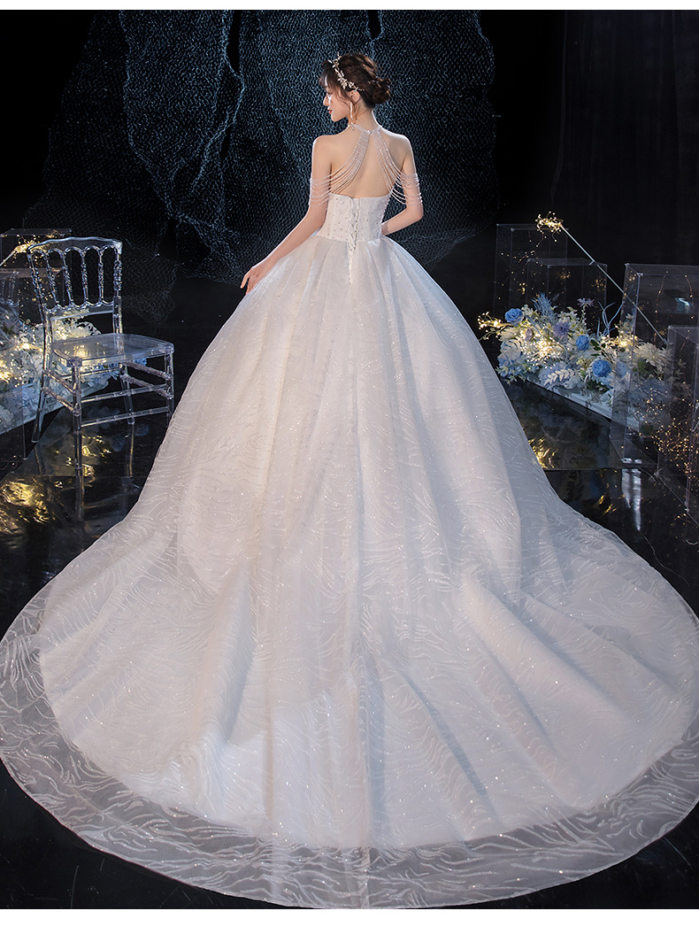 星空主婚纱大拖尾2022新款气质新娘一字肩齐地森系超仙梦幻法式轻