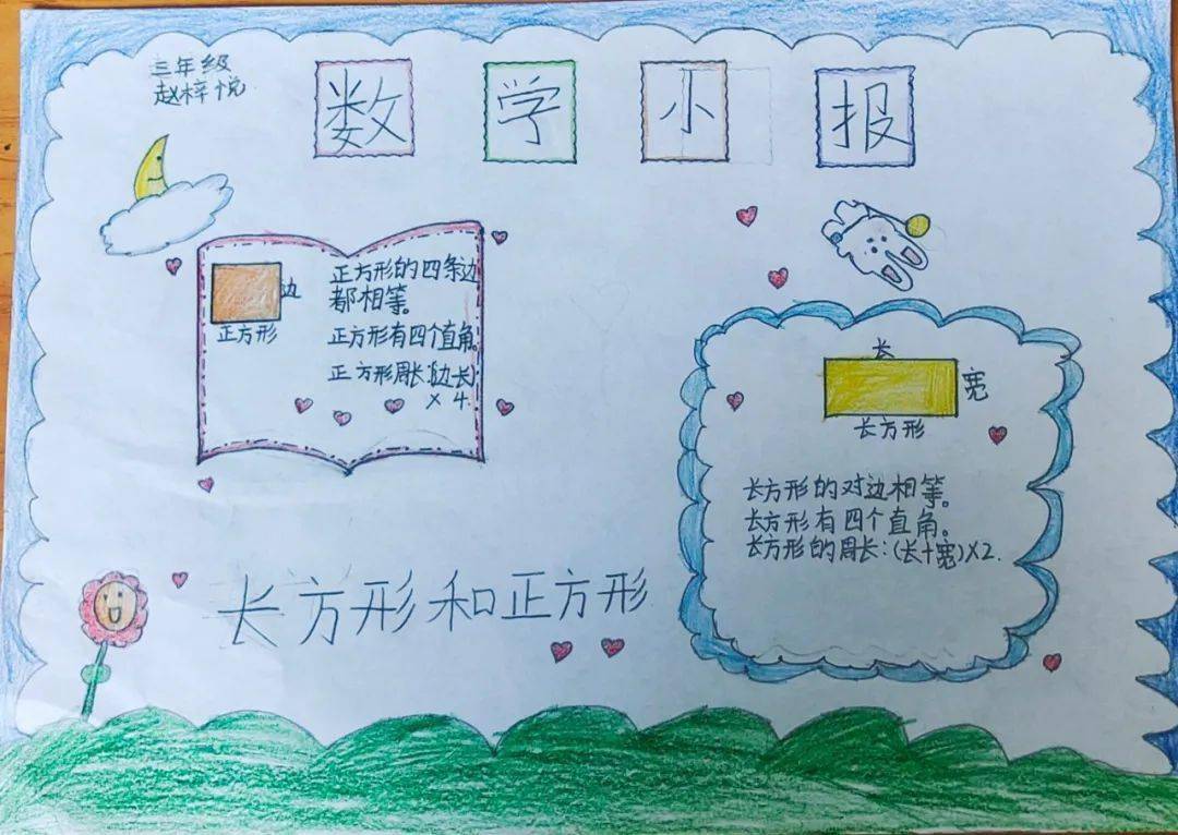 三年级上册数学《长方形和正方形》数学小报,给孩子看看