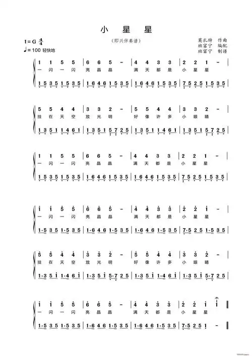 小星星(旋律 即兴伴奏) 歌谱简谱网