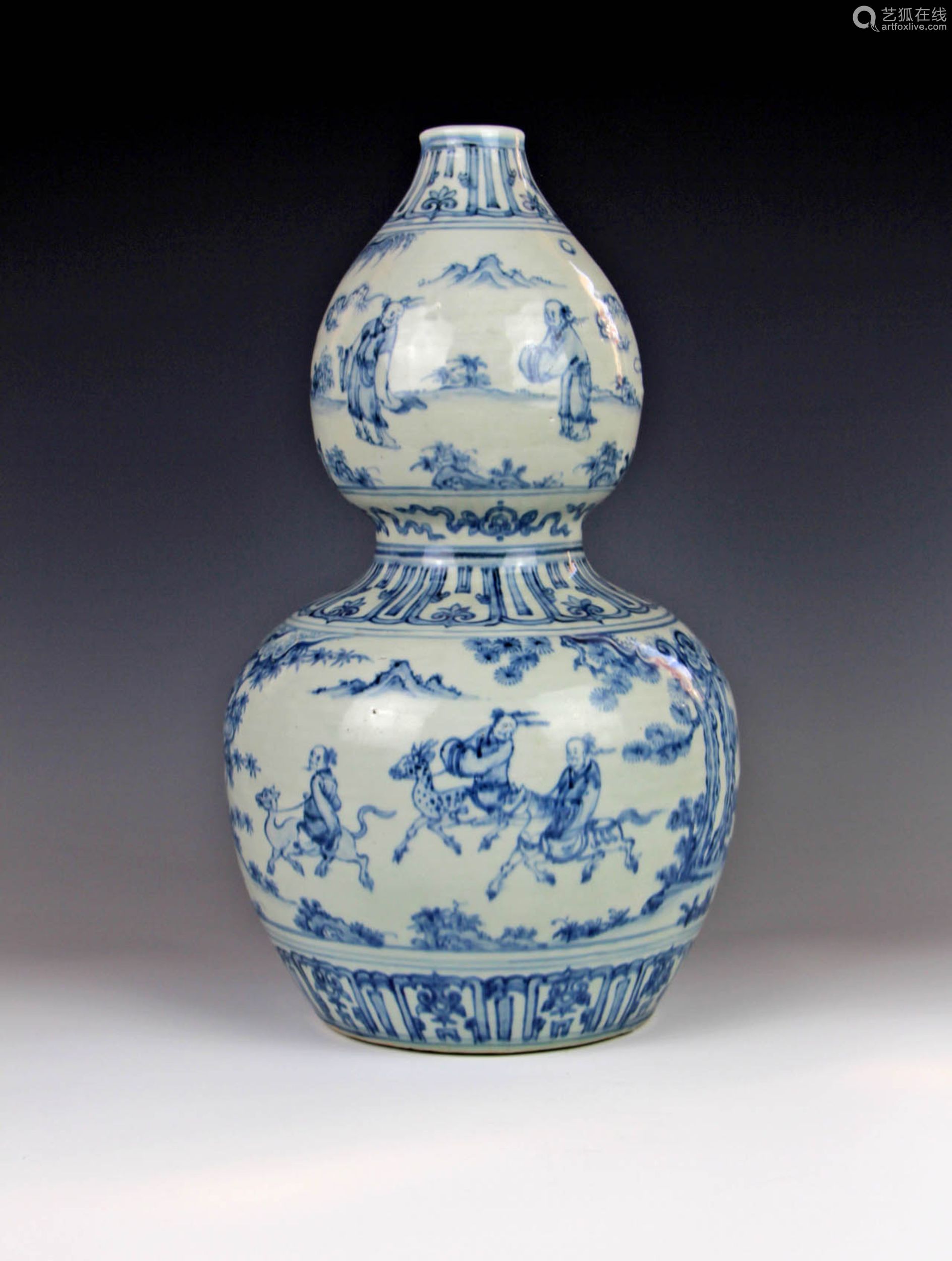 明 嘉靖 青花 云鹤八卦纹葫芦瓶