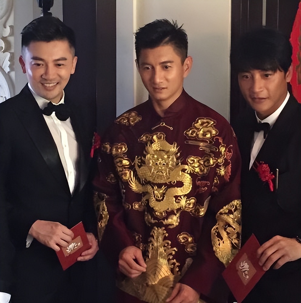 上午迎亲环节,吴奇隆穿龙袍亮相,小虎队伴郎团还现场献歌.