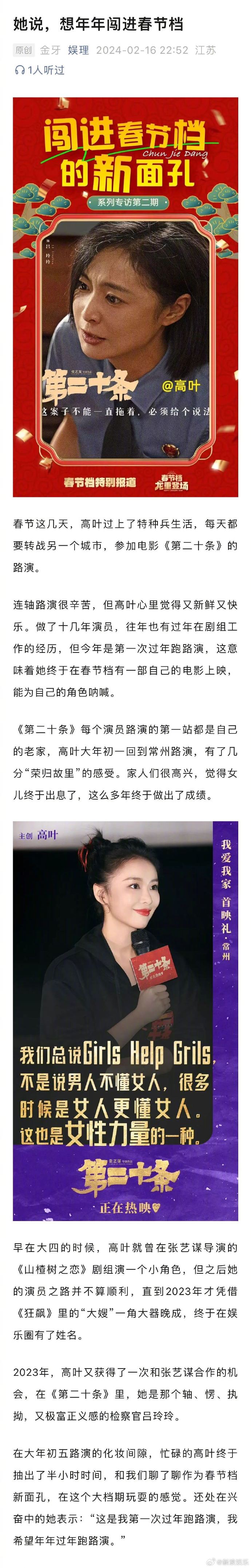 高叶说赵丽颖让她心疼心碎##张艺谋让高叶多拍好戏
