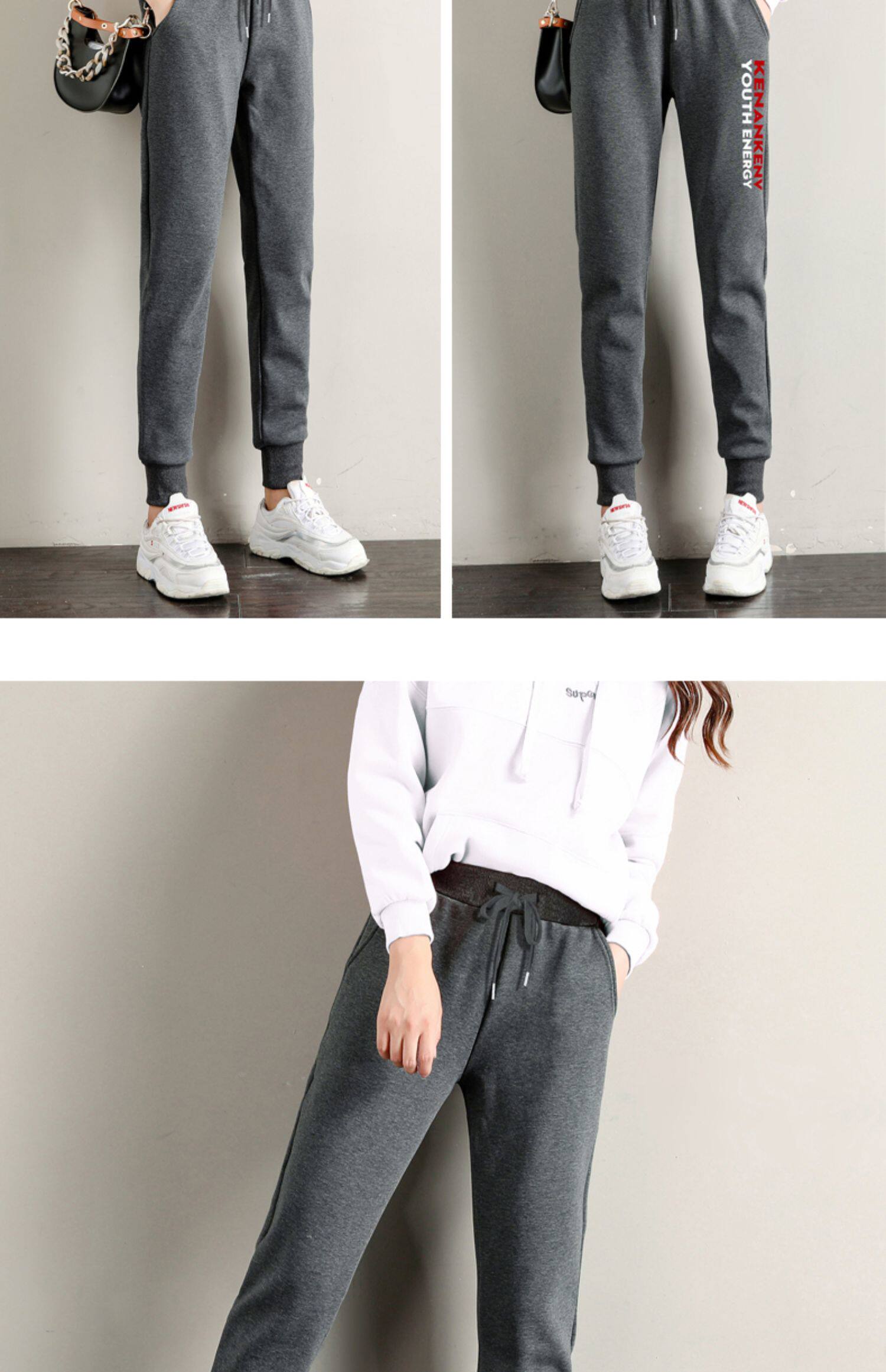 实拍运动裤女宽松束脚秋冬加绒加厚显瘦百搭九分卫裤小个子休闲裤