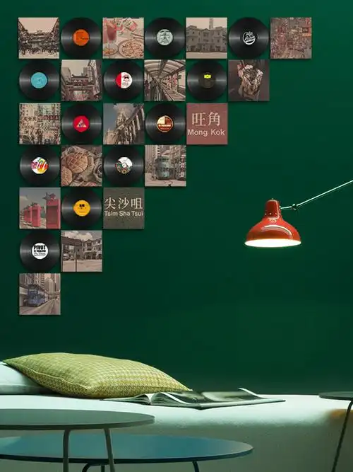 黑胶唱片装饰画老香港仿真黑胶唱片海报组合复古装饰画建筑电影歌手