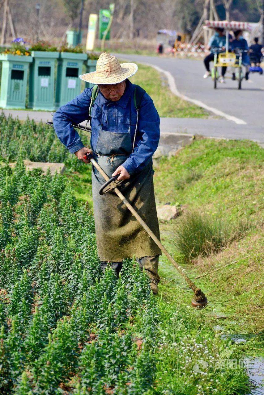 五一劳动节园区浇水工人