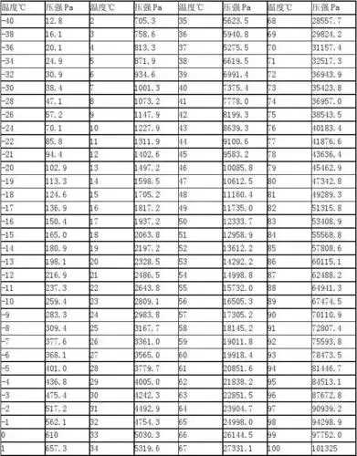 水在不同压力状态下的沸点对照表