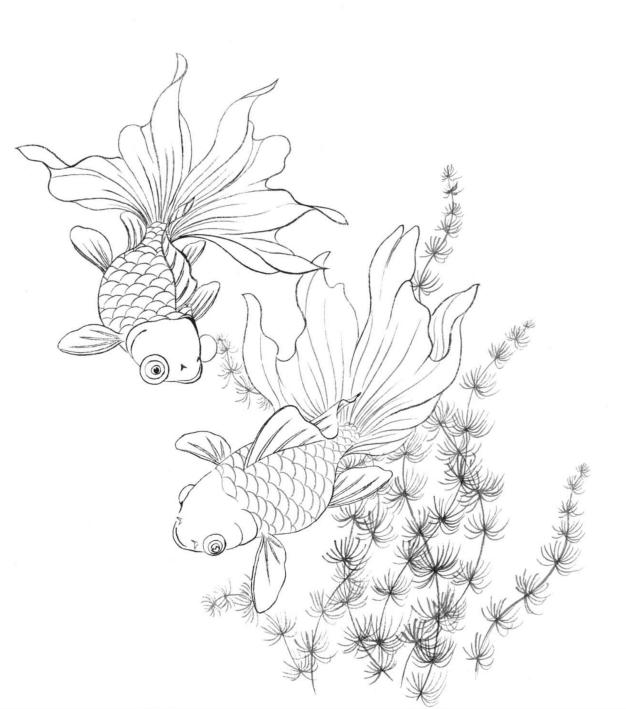 金鱼 白描画谱
