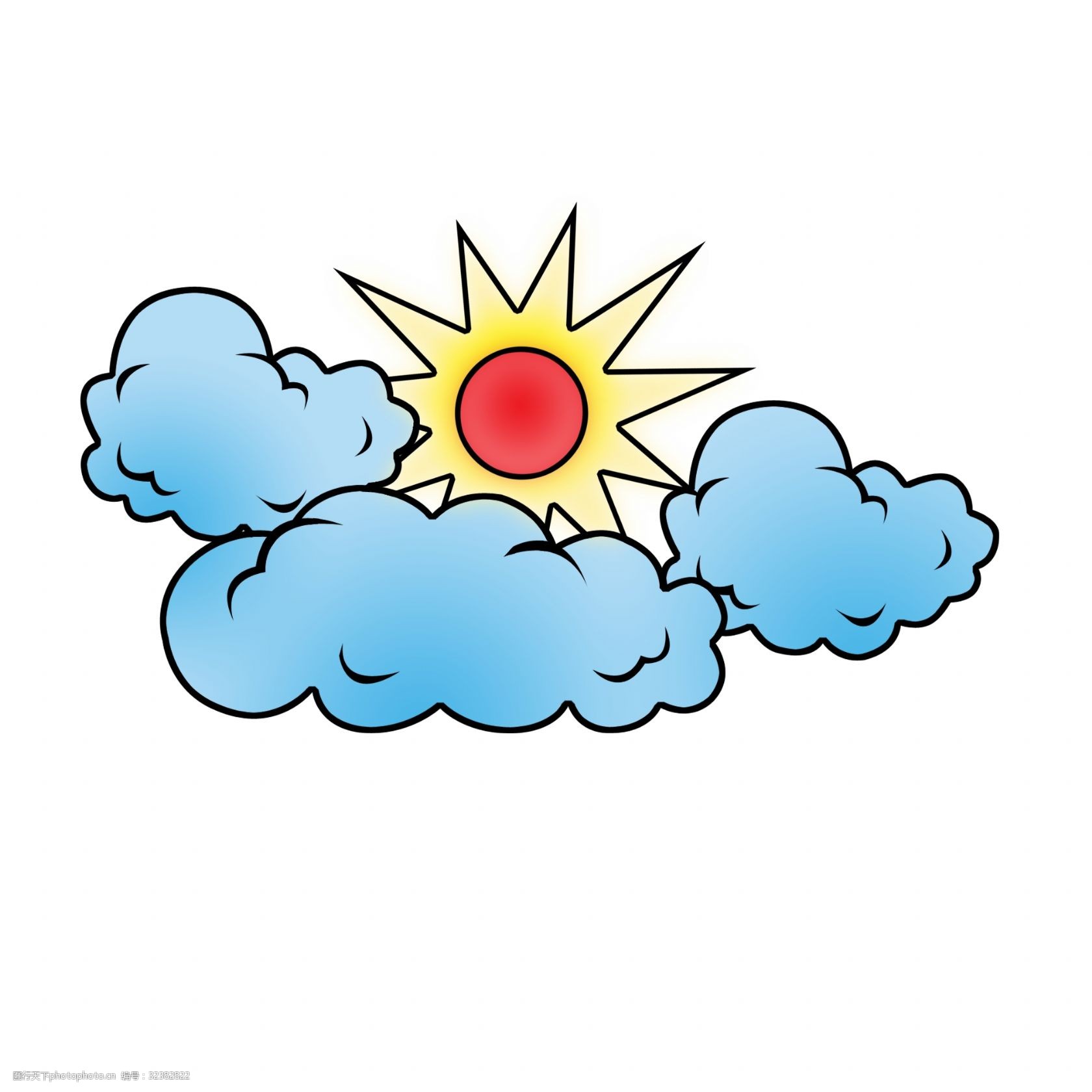 多云转晴卡通插画 多云转晴 红色太阳 阳光装饰 蓝色的云朵 乌云 天气