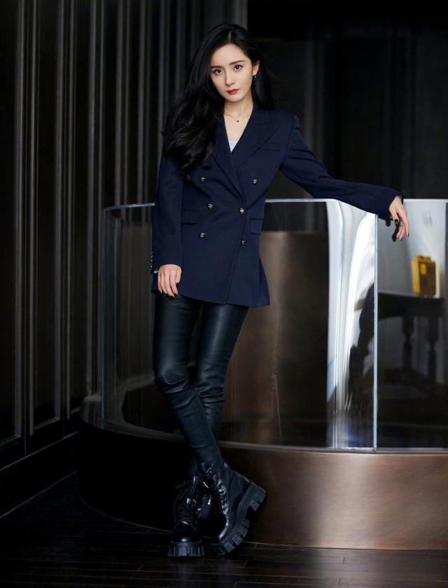 杨幂,娱乐圈中有名的"穿搭女神",近日在一次活动中以一身黑色皮裤搭配