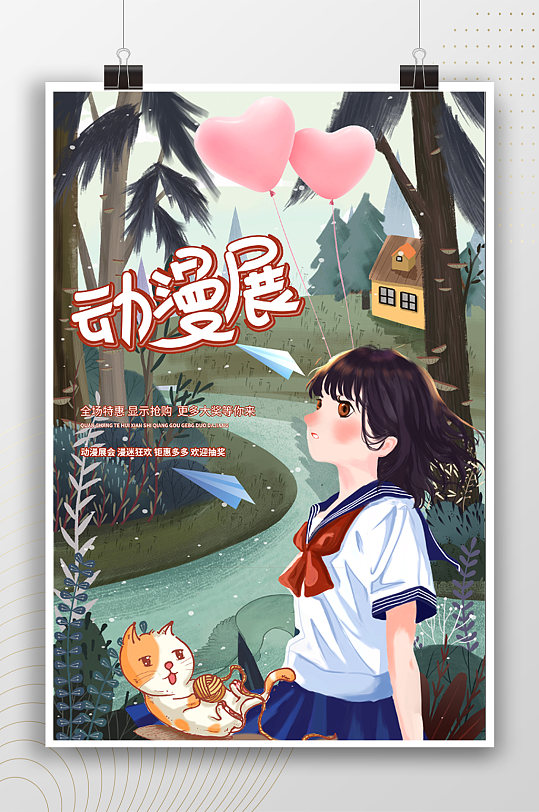 女学生动漫展卡通动漫海报 漫展海报