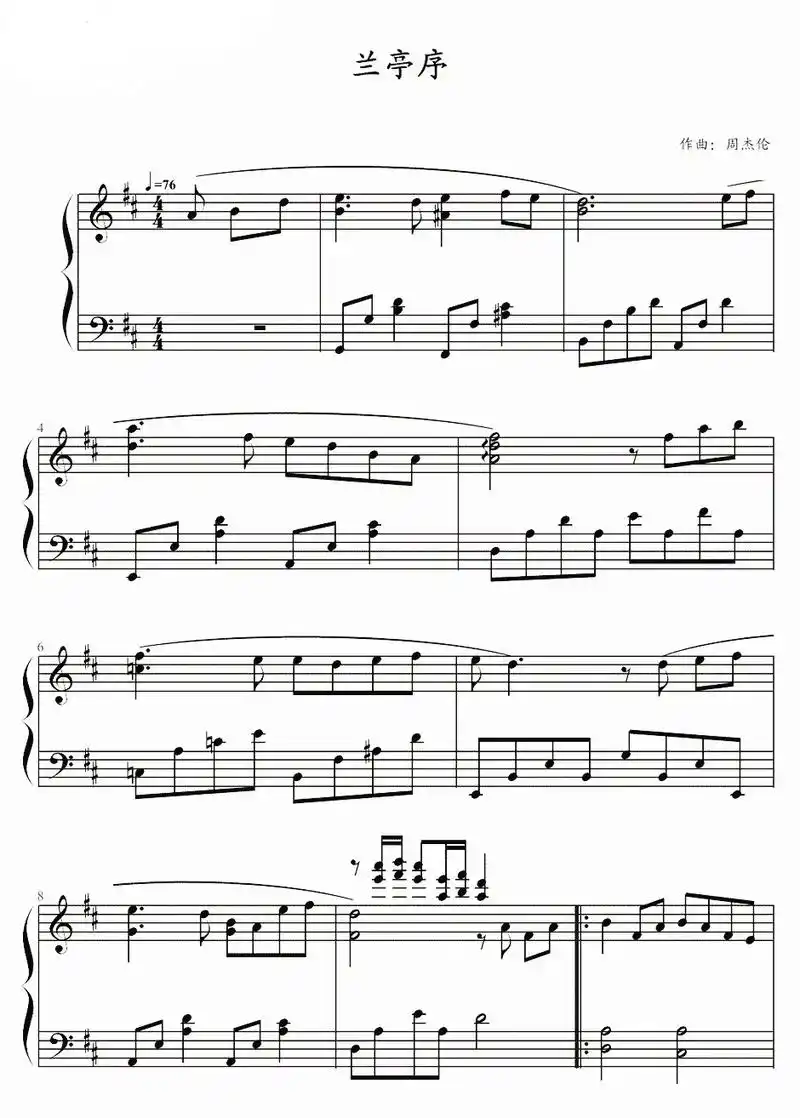 《兰亭序》钢琴谱.#钢琴谱 #五线谱 #钢琴弹奏 #流行音乐 - 抖音