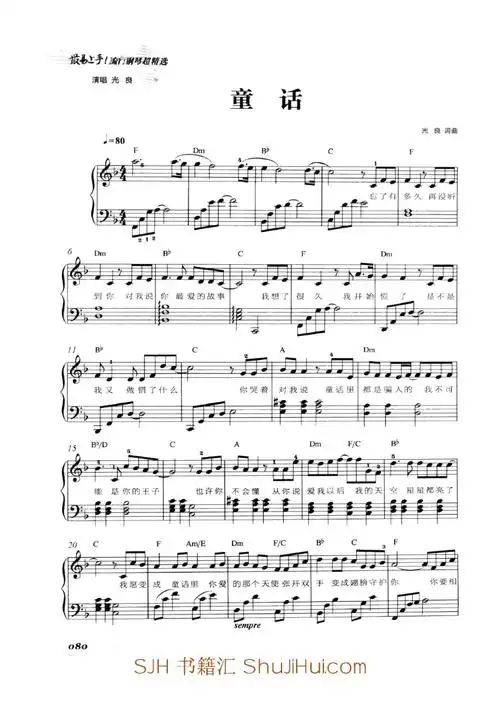 光良【童话】钢琴谱-c调-虫虫钢琴