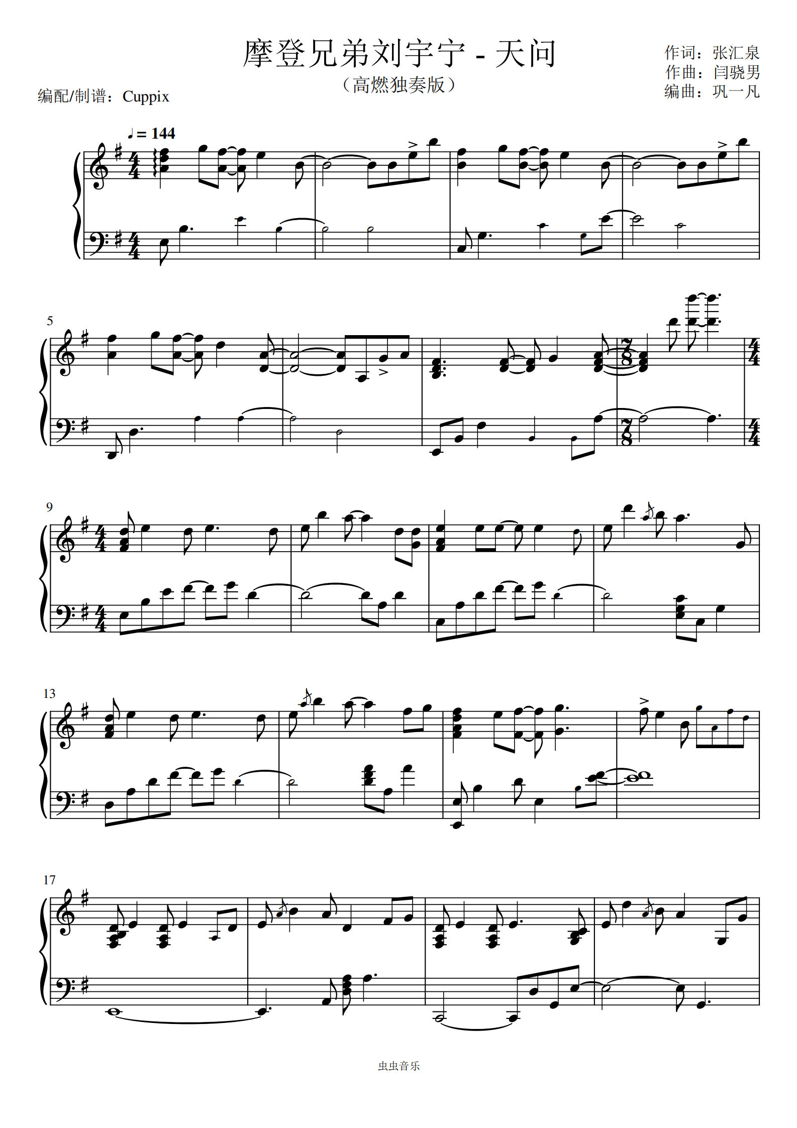 《天问》高燃独奏版-cuppix改编(山河令,摩登兄弟刘宇宁)钢琴谱-虫虫