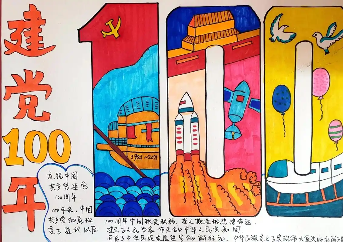 简单的庆祝建党100周年手抄报,含内容文字,建党手抄报模板大全