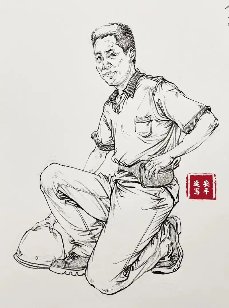 坐姿男青年速写步骤
