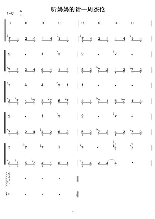 听妈妈的话 周杰伦 初学者c调简易版 钢琴双手简谱 钢琴简谱 钢琴谱