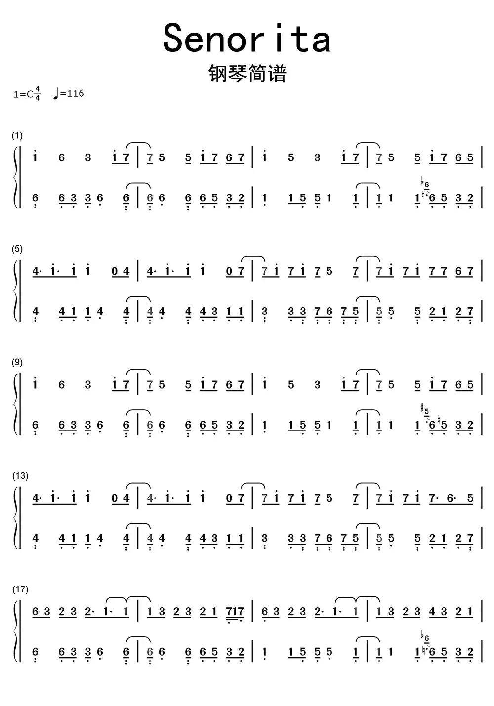 senorita钢琴简谱乐谱