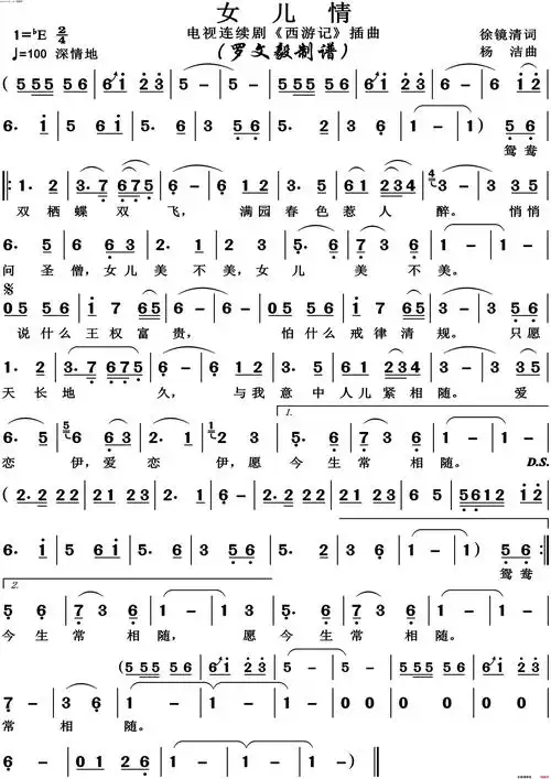 女儿情高清版简谱1