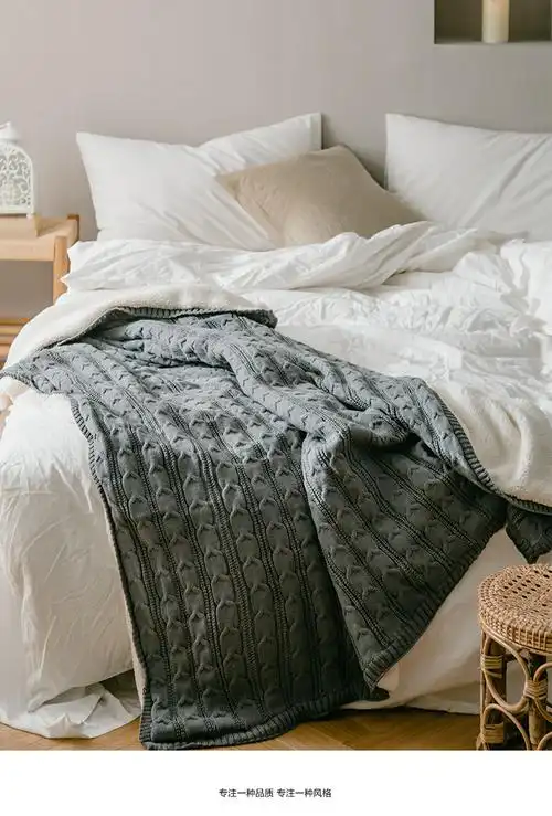 外贸针织毛毯被子单人办公室午睡沙发加绒加厚双层羊羔绒毛线盖毯
