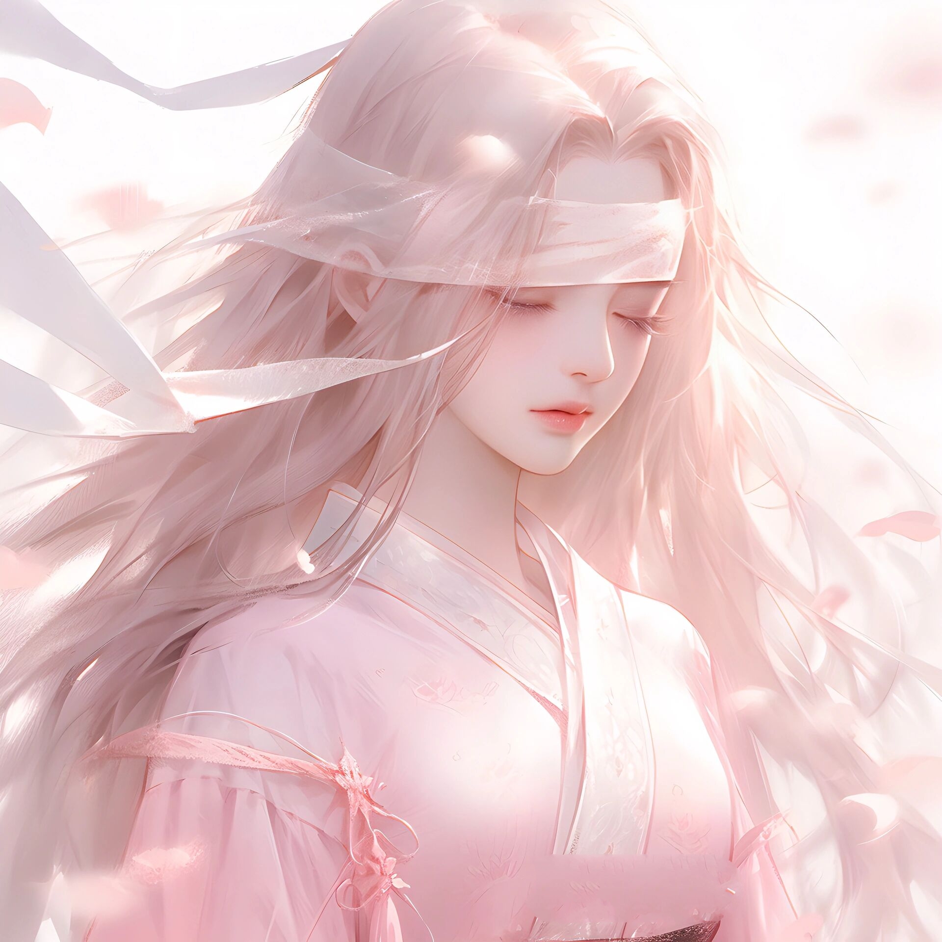粉色系蒙眼小姐姐谁能抵挡得住呢?▏女生头像
