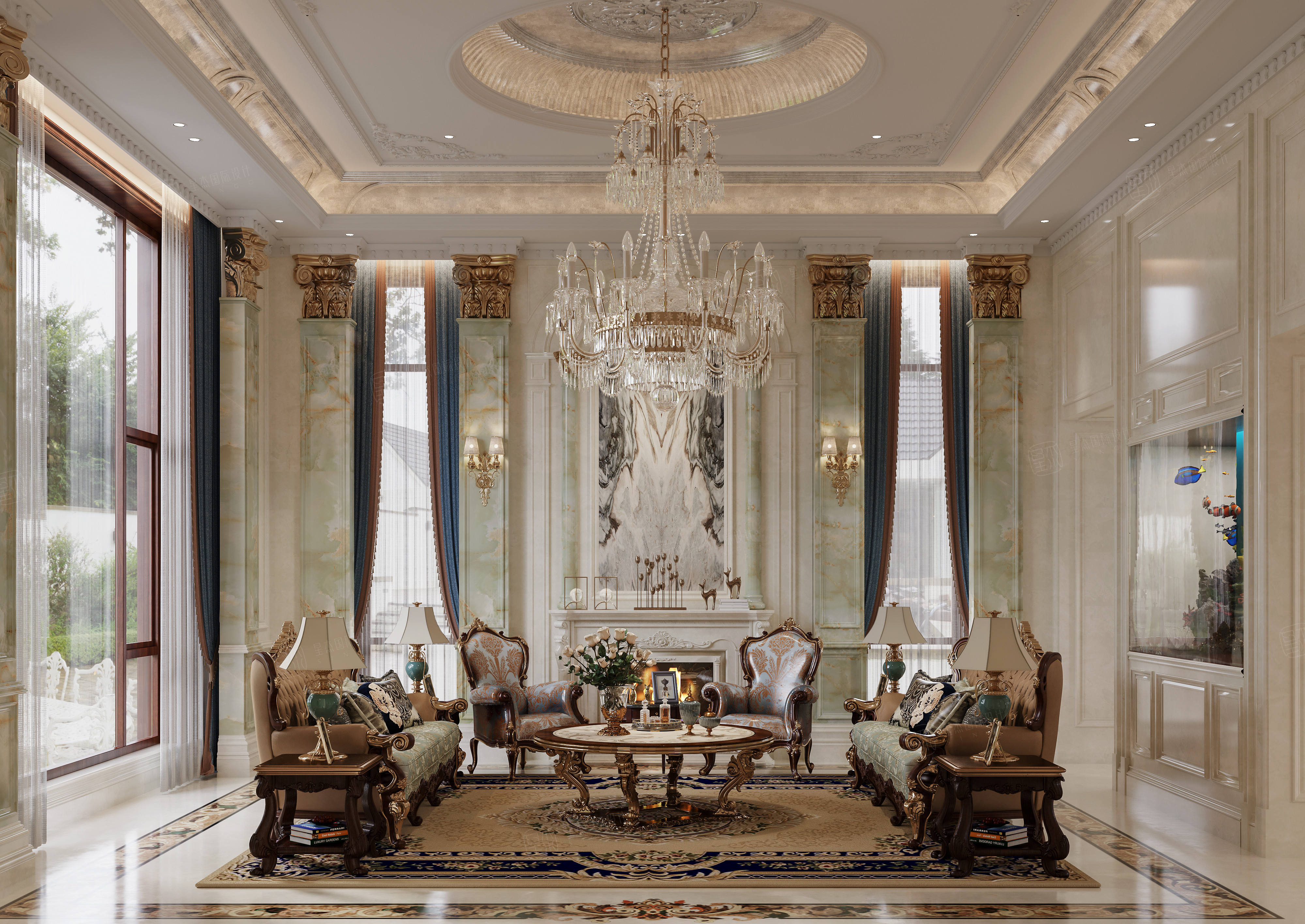 别墅欧式客厅装修实景图片欣赏-北欧风格别墅装修效果图客厅-齐装网
